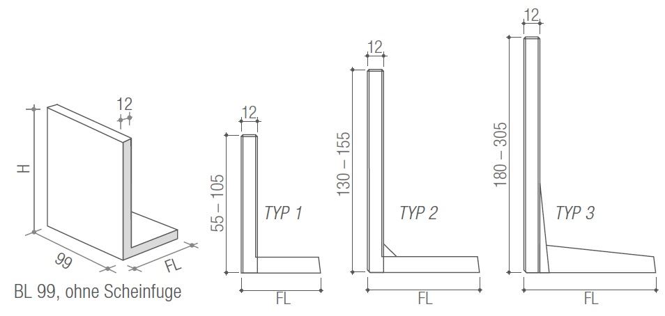 Baulänge 99 cm ohne vertikale Scheinfuge