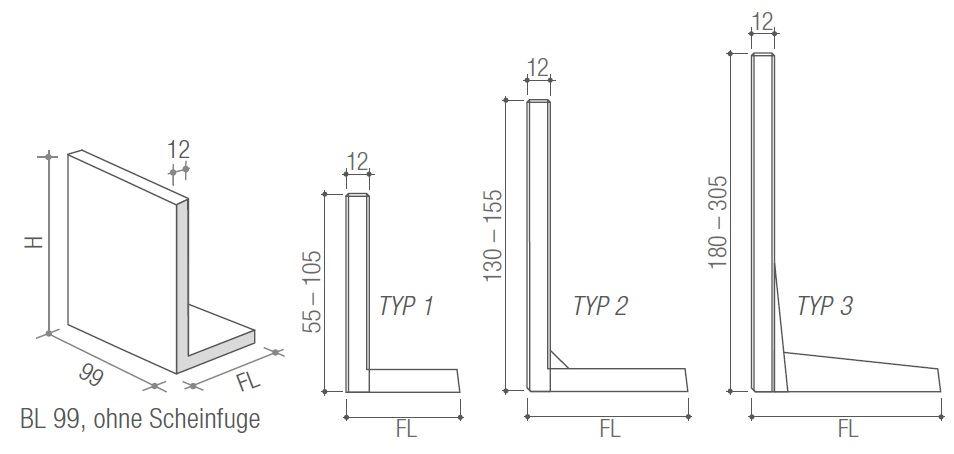 Bauhöhen 55 cm bis 305 cm (Höhenschritt 25 cm)
