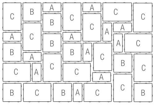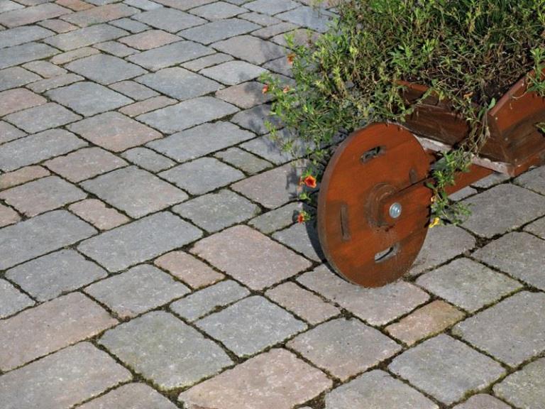 Lebendige Zierverbände mit willkürlichen Steinanordnungen sind mit dem Mühlenpflaster leicht zu realisieren. Drei Steingrößen, ein Quadratformat und zwei Rechteckformate, lassen sich beliebig miteinander kombinieren und setzen der Phantasie bei der Verlegung keine Grenzen. Die Oberfläche ist leicht gewellt und wird durch die natürlichen Farbtöne dezent betont.
