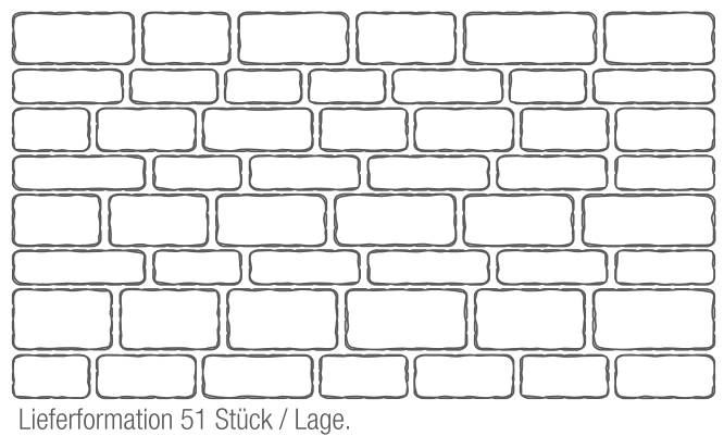 Die Kombination aus vielen verschiedenen kleinen und großen Steinen bewirkt einen unwiderstehlichen, rustikalen Charme. Die enorme Formatvielfalt ermöglicht unzählige Verlegearten - von geradlinigen Reihenverbänden bis hin zu verspielten Wilden Verbänden.