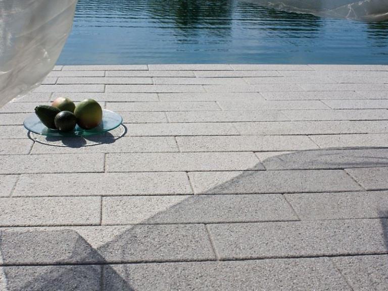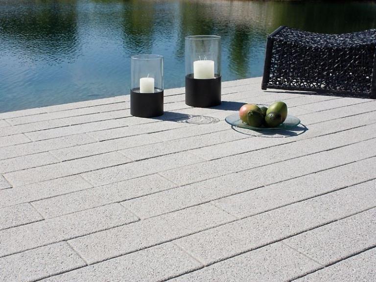 Die Kombination aus geradlinigen Formaten mit einer fein gestrahlten Oberfläche machen das Pflastersystem VISTA zu einem echten Hingucker. Die Gestaltungsvielfalt ist angesichts der zahlreichen Steinformen enorm groß. Es lassen sich feingliedrige und großzügige Flächenbilder kreieren. Das seitlich umlaufende Verzahnungssystem verhindert ein Verschieben der Steine.
