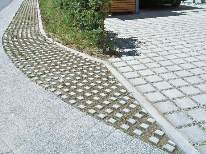Mit der bg-Platte lassen sich Flächen wirtschaftlich entsiegeln. Optisch hervortretende Betonhöcker heben die Lasten gezielt auf und leiten diese in den Boden. bg-Platten sind vorzugsweise für den Einsatz auf Parkplätzen konzipiert worden.