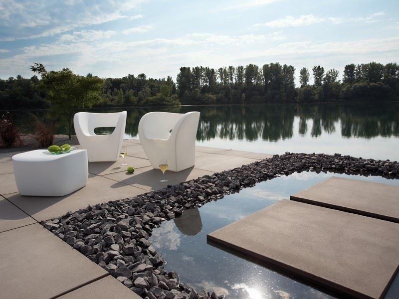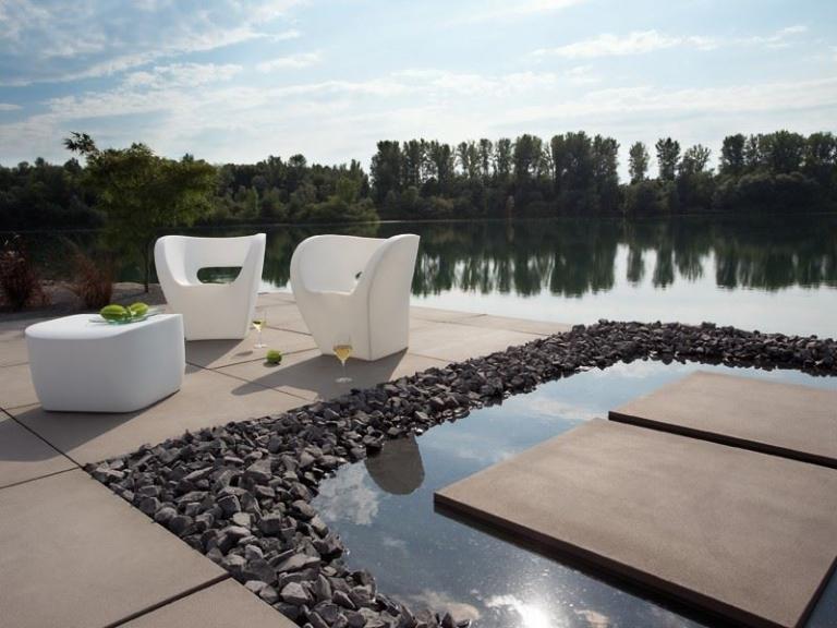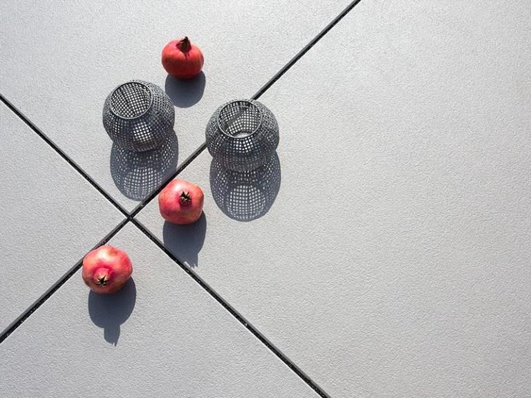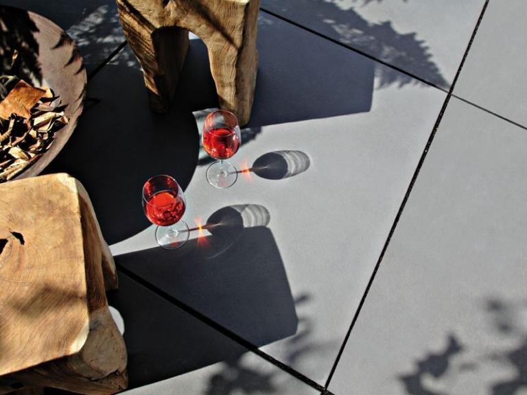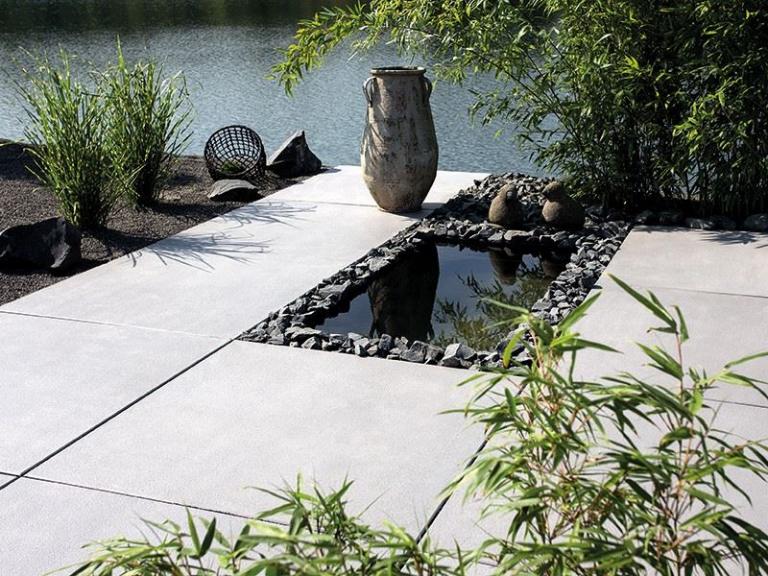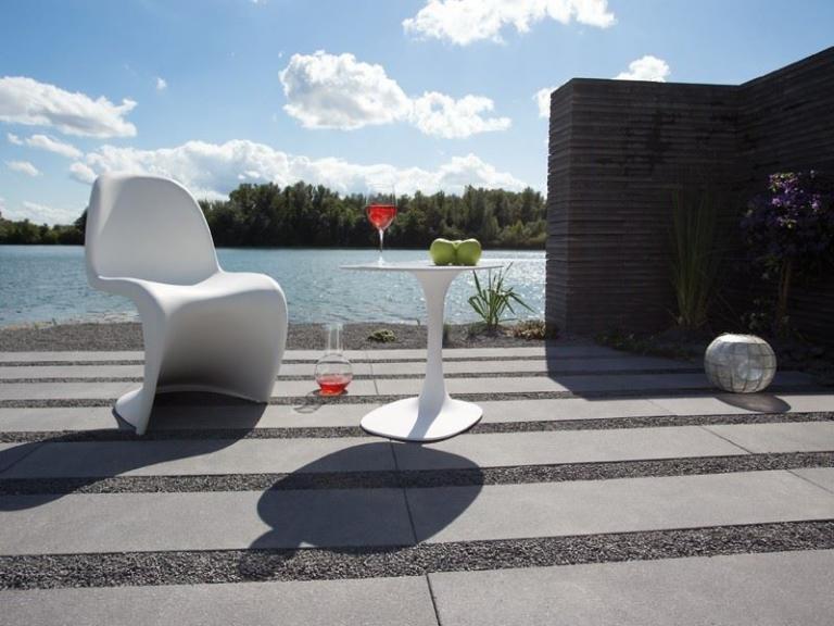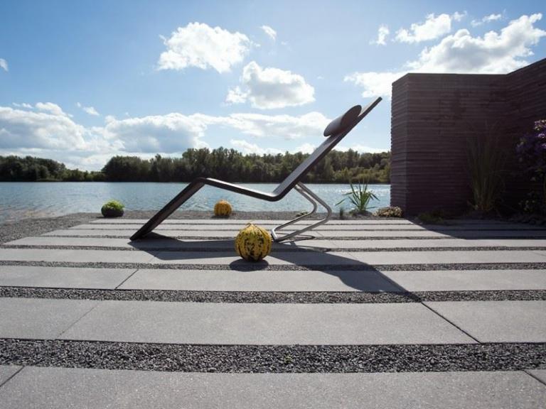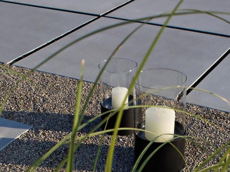 Puristisches Sichtbeton-Design und markante Abmessungen setzen ein stilsicheres Zeichen in einem modern geprägtem Umfeld. Die fein angeraute Oberfläche ist besonders dicht und homogen. Titania lässt sich mit schmalen oder breiten Fugen verlegen. Insbesondere die Verwendung von edlen Glanzkiesen sorgt für spezielle Effekte.